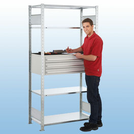 In diesem Kaiser Systeme Schubladenregal ist die Lagerung von Kleinteilen oder Werkzeug gemeinsam mit größeren Lagergütern sicher und geschlossen möglich. Der saubere, schnelle und übersichtliche Zugriff auf Kleinteile und Werkzeuge ist immer sichergestellt.weiter